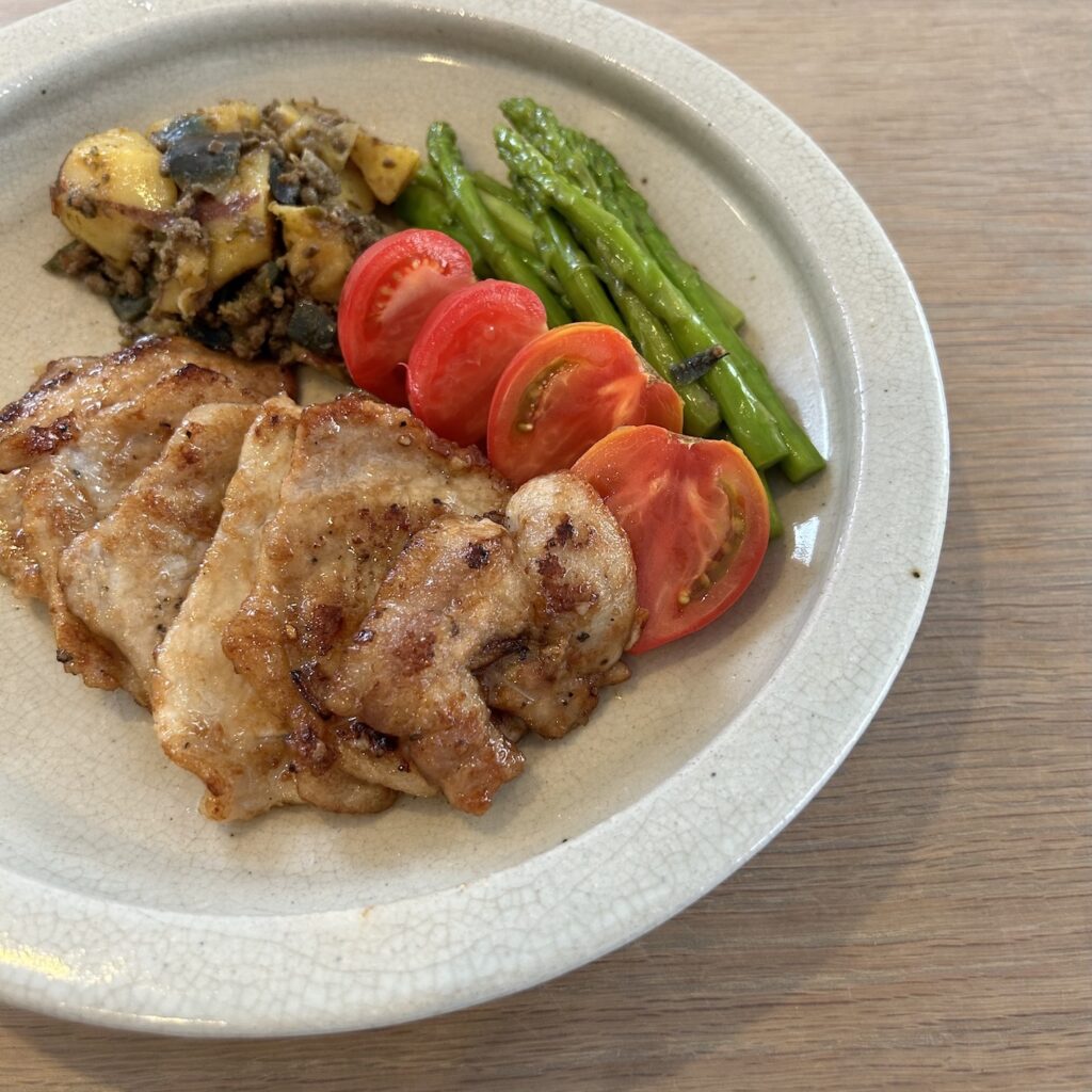 これは、林拓児さんの石皿。石皿とは、愛知県の瀬戸で作られた瀬戸焼の厚手の大皿で、江戸時代に庶民の間でも使われたという。盛り付ける部分が広いことと、縁があることで盛り映えすることから食器好きにとって魅力的なうつわだ。経年により表情の増した古物ももちろんよいが、ずっしり重いので食卓では大抵、真ん中に鎮座。一方、瀬戸出身の作家として地域に伝わるものを参考にしながら作る林さんの石皿は、標準的なプレートの大きさや重さで、おもてなしの食器としても、日常のワンプレートにも、使いまわせるところがとても気に入っている。トチ渋に浸して貫入に色が入ることで購入した時から使い込んだ雰囲気を宿し食材を美味しく見せる。料理と相性のいい写真が多すぎて、選ぶのが大変だった。面が平らなのでキャンドルを置いて飾るのもいいかんじ。