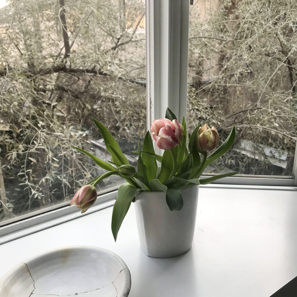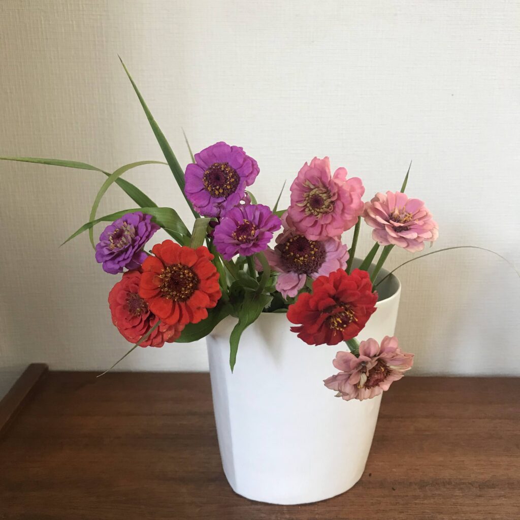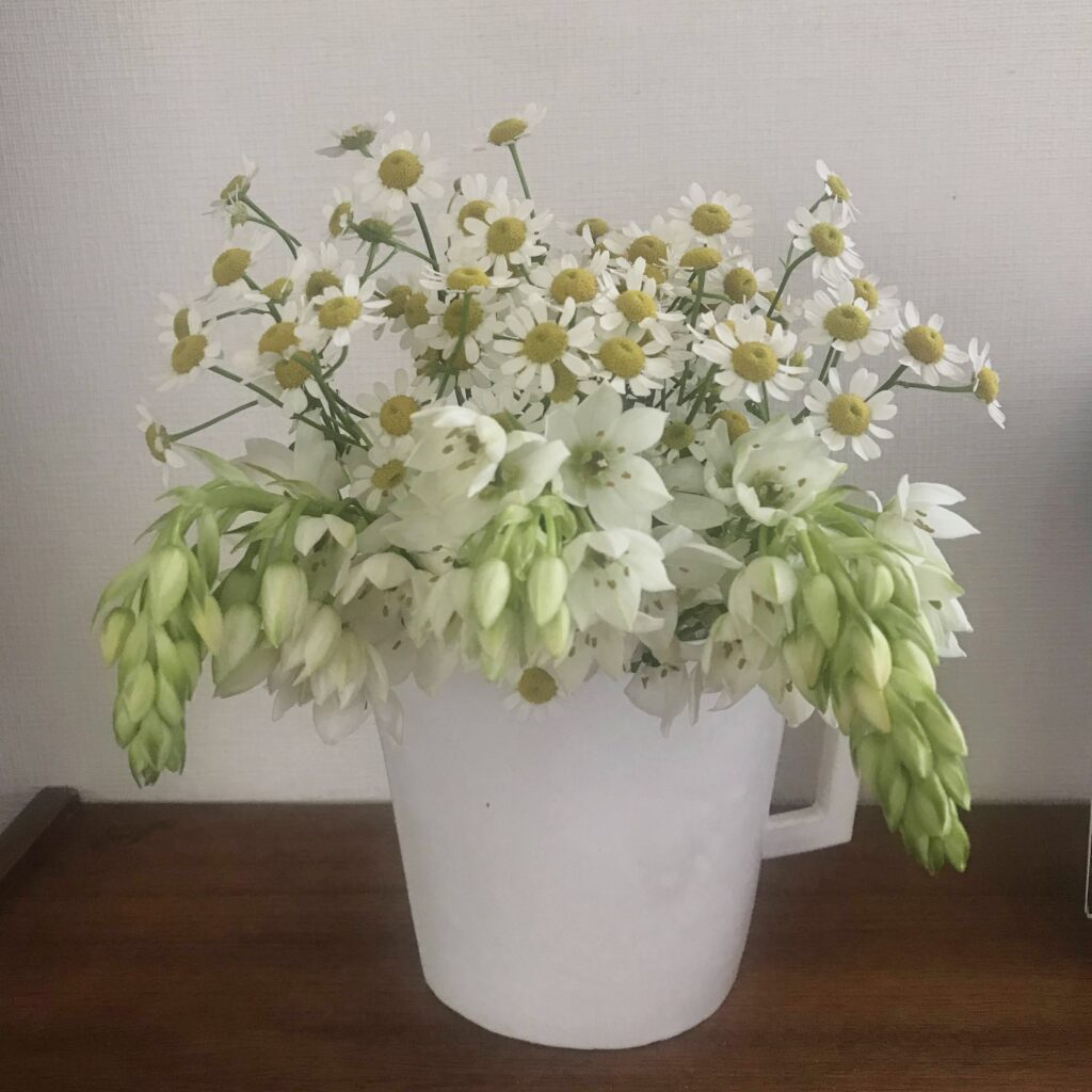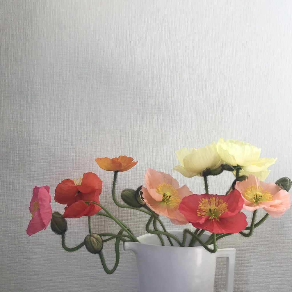これは、安藤雅信さんのピッチャー。注ぎ口のついたマグカップのようなデザインだけでも充分アトラクティブなのに、口径がとても広い(ワインボトルが入るほど。写真はハーフ)というユニークさもあって「なんだこれは!」とひとめぼれ。サイズ感の常識が壊されて心がザワザワする感じが面白かったのだと思う。安藤さんの作品は、ほとんどがタタラ作り(板状の粘土を型にあて叩きながらかたちづくる技法)で作られる。叩くことで粘土の粒子が乱れて、真っ直ぐにみえる表面であっても焼くことでゆがみが生じることを作品の表情にいかしている。このピッチャーには、そのゆがみがわずかな凸凹となり、平面的なボディに影を生んでいる。それが独特の静けさにつながっているのだと気づいたのは、ずいぶん時間が経ってからのこと。切り花をたくさんザクっと放り込もうが、お客様にペットボトルのお茶を入れ替えようが、「ええ、引き受けますとも」と動じることなく、こちらがしたい使い方に静かに応えてくれている。