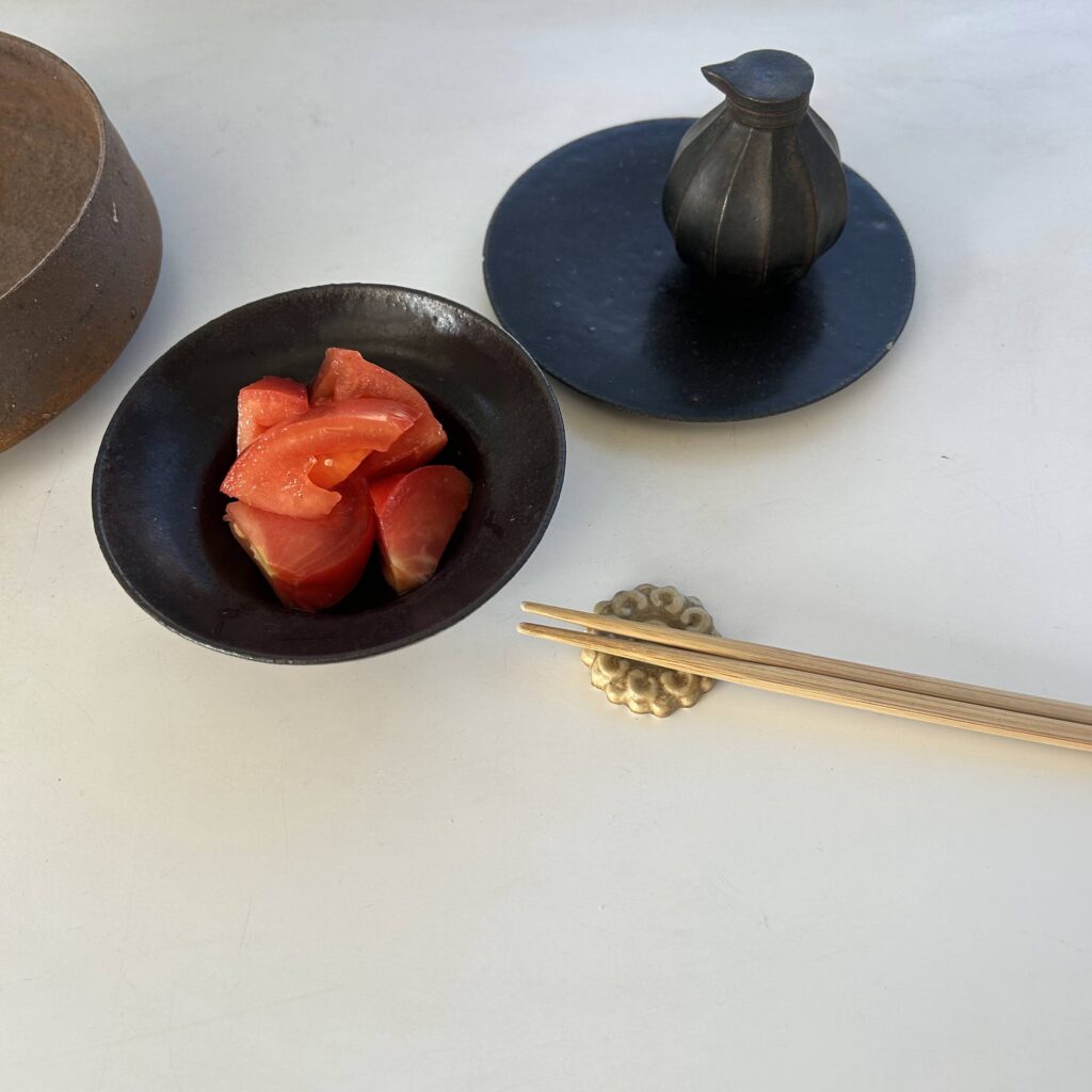 This is Norikazu Oe’s soy sauce dispenser—drain the best in the world (according to my research). Oe, who began pottery at a young age and has a long career creating a wide variety of tableware, has distilled his technical skill, good taste, and thoughtful attention to household items into this masterpiece. The chamfered edges combine aesthetic appeal with a non-slip grip that makes it easy to hold. I think I’ve figured out the secret behind its sleekness, but let’s keep it a secret. By the way, Kikkoman’s soy sauce bottles have evolved over the past few years. They’ve switched to a “no-air-contact” type. As a result, this masterpiece soy sauce dispenser is now finding a new purpose as a container for ponzu or mentsuyu.
