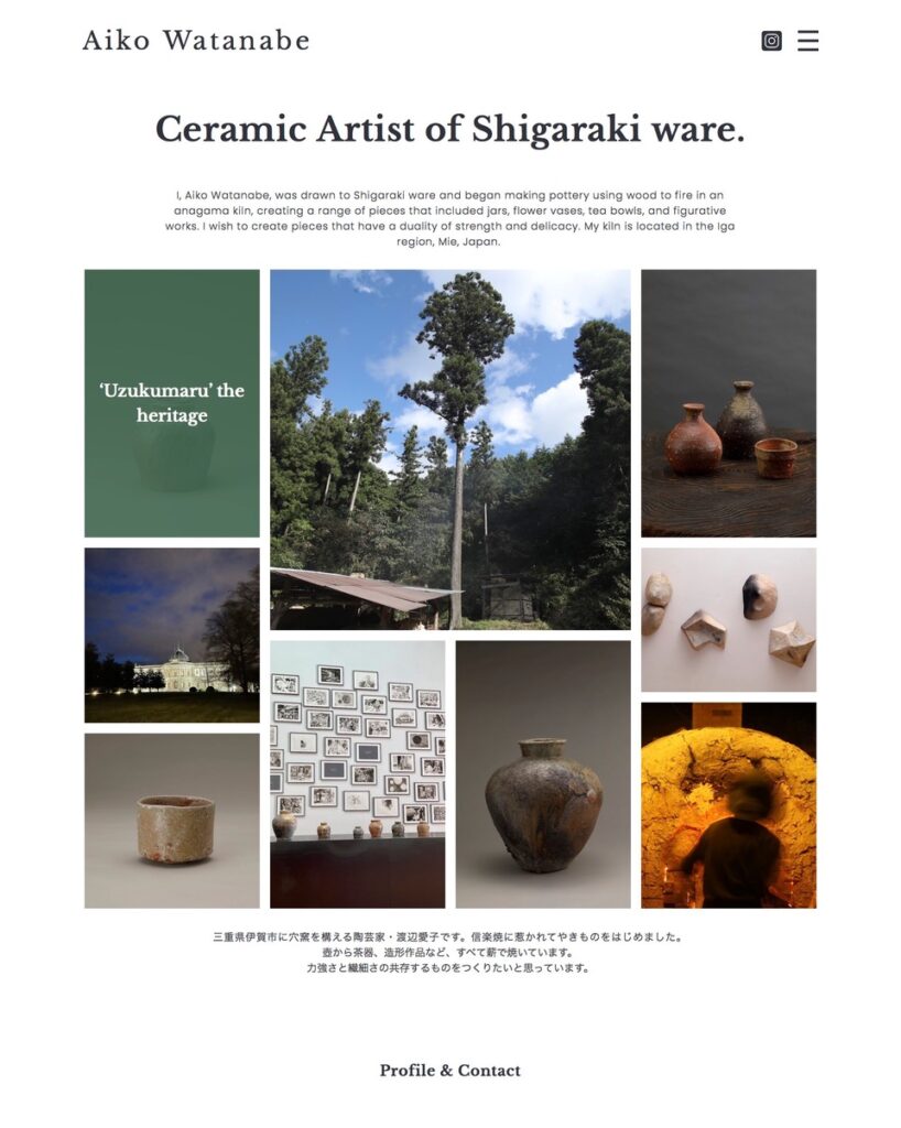 Website planning and production for ceramic artist Aiko Watanabe. Featuring a studio introduction and portfolio that incorporates a simple layout designed to highlight the pleasing quality of photographs by photographer Hirohiro Okawa, who has been documenting her work.